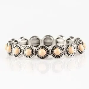 Globetrotter Goals - Silver-Tone Bracelet with Cream Cabochon Circles
