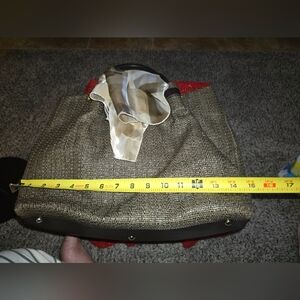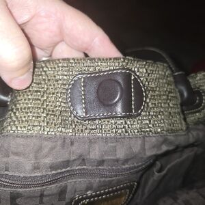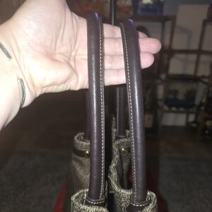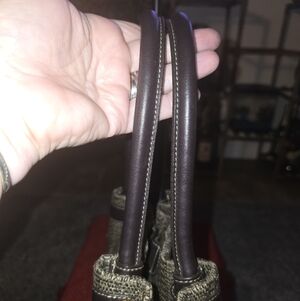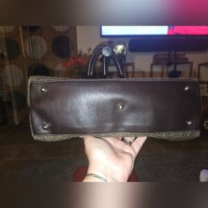 Stylish woven tote in brown with dark brown handles. Lightweight and versatile for daily use. Neutral brown complements any outfit. EUC
