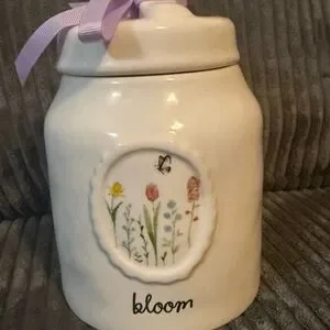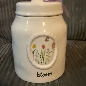 Rae Dunn White Ceramic Jar with Floral Pattern- BLOOM- NWT