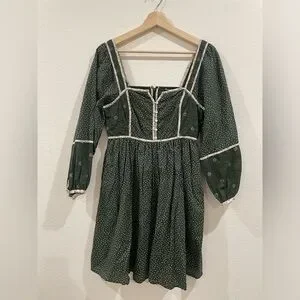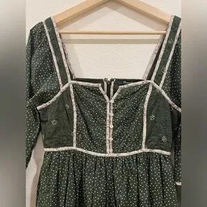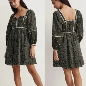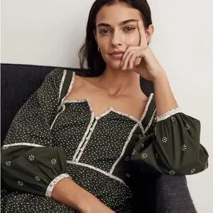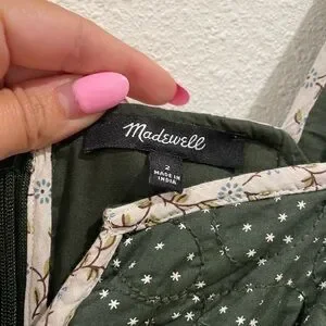 Madewell Mix Square-neck Green Quilted Floral Spring Prairie Mini Dress Size 2