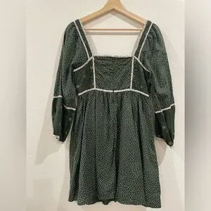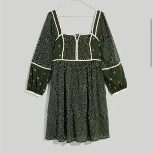 Madewell Mix Square-neck Green Quilted Floral Spring Mini Dress