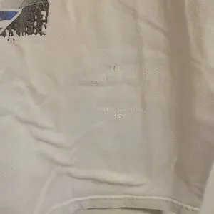 Shirt is in fair condition, has some small holes on shoulders/sleeves and in the front near the bottom. Still wearable, great work or garage shirt
