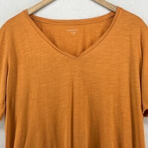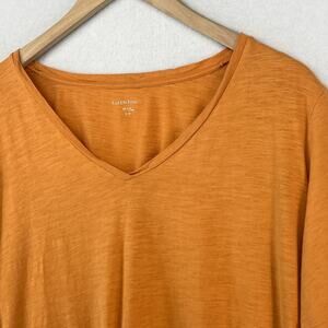 EILEEN FISHER Top M Slub Organic Cotton Jersey V-Neck Short Sleeve Orange