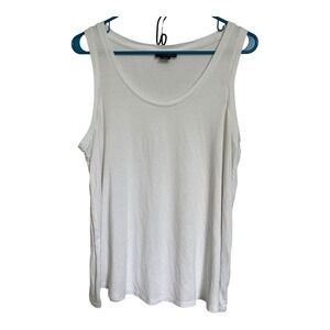 Metaphor Womens Tank Top White Sleeveless Minimalist Rayon Stretch Breathable L
