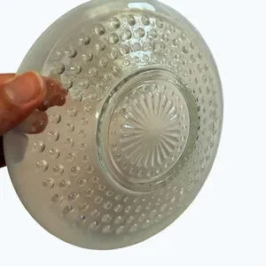 Beautiful set of vintage hobnail milk glass saucers featuring a classic raised bubble pattern and soft opalescent rim. These mid-century pieces have a timeless farmhouse and cottage aesthetic, perfect for display or everyday use.