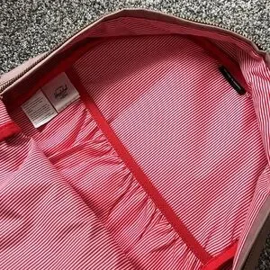 Excellent condition. Has a laptop section and it fits a 15.6” laptop. It’s a warm dusty pink.