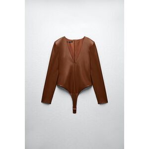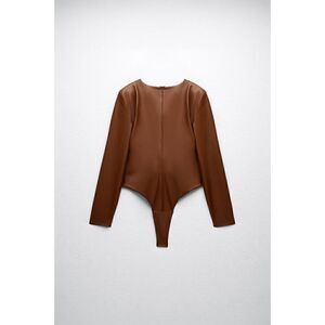 ZARA NWT SIZE MEDIUM FAUX LEATHER BODYSUIT BROWN, WINTER 2022 FAV!