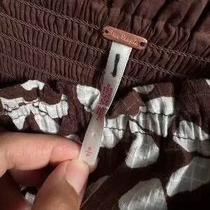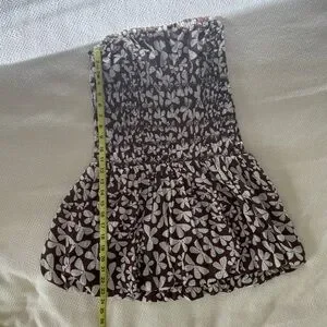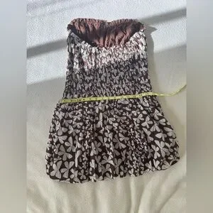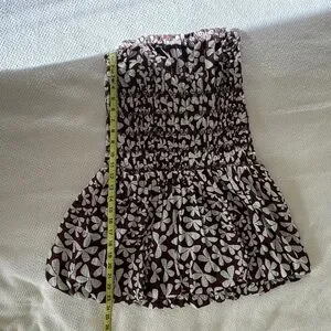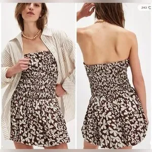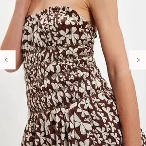 Free People Brown & White Floral Smocked Strapless Bubble Dress
