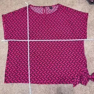Shein Curve Plus 1XL Pink Black Print w/Side Tie Short Sleeve Blouse