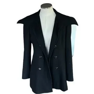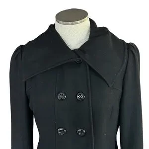 Guess Pea Coat Black Pleated Large Collar Size Large
