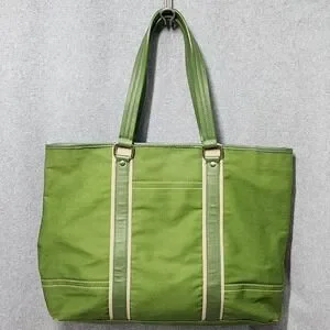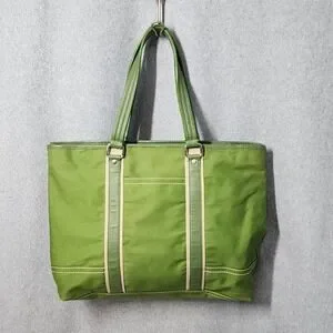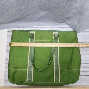 Kate Landry Tote Bag Womens Large Green Canvas Shoulder Purse Geometric Lining