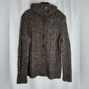Women’s L.L. Bean wool blend brown knit buttoned Cardigan size Large