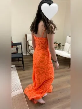 Orange beaded Lace Spaghetti Strap Prom Dress with Front Slit nwt size 6