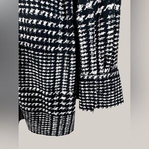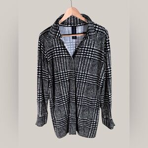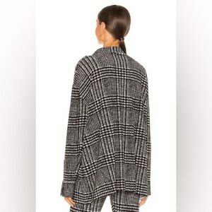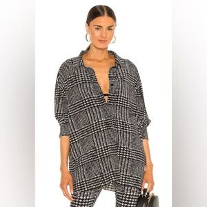 The Norma Kamali Oversized Boyfriend NK Shirt is made in China from a stretch jersey fabric composed of 95% polyester and 5% spandex. It features a front velcro closure and split cuffs. The style runs large, so it is recommended to size down. This item is not sold as a set.