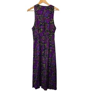 Vintage Floral Black Purple Long Sleeveless Sundress