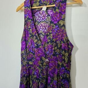 Embrace elegance with this stunning floral purple sleeveless dress. Perfect for any occasion, this dress offers a flattering fit and vibrant style.