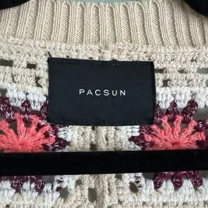 PacSun Womens Large Crochet Granny Square Cardigan Pink Tan Cotton Knit Sweater