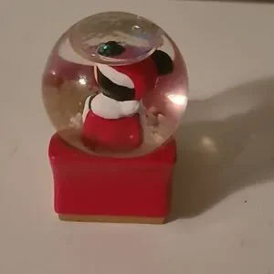 Pre-owned in good condition. The.mini snow globe is approximately 3 inches tall.It is the 2003 mini snow globe exclusively for J.C. Penny. It is Santa Mickey on a sleigh holding a gift. Comes with original box and packaging.