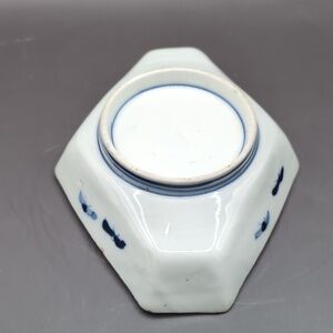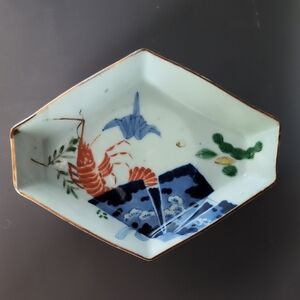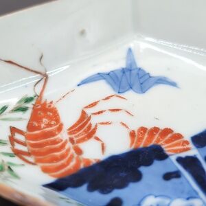 Antique Japanese Imari Porcelain Hexagonal Serving Bowl Dish Shrimp Crane Motif