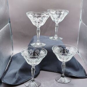 Set of Four (4) Fostoria Florentine Etched Crystal Champagne Sherbert Glasses