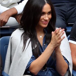 As seen on Meghan Markle in the light gray shade vs the ivory off white version I’m selling. It’s the exact same style just in a slightly lighter shade