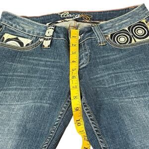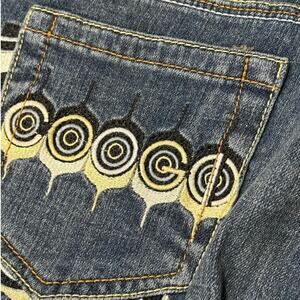 Step back into the early 2000s with these brand new with tags Coogi flare jeans! The ultimate Y2K statement piece featuring bold geometric embroidery on both back pockets for that iconic vintage Coogi flair. These jeans boast a flattering low-rise fit and flare leg — perfect for channeling that early 2000s vibe.