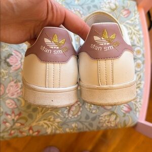 Adidas Women's Stan Smith White Sneakers with Rose Gold Heel Tab Size 9