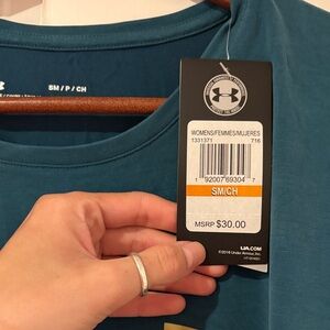 Teal Under Armour tee with a bold gold logo. Soft fabric for everyday comfort. Brand new with tags