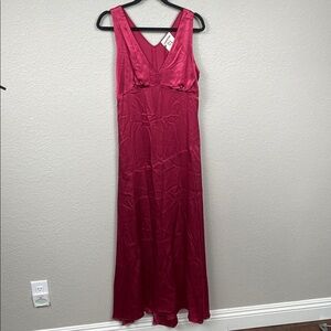 NWT Semicouture Red Berry Satin Silk Maxi Dress Lingerie Slip Sz 40