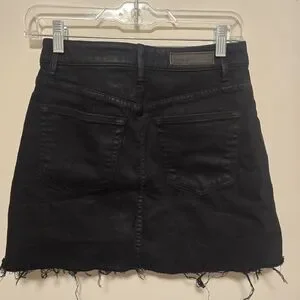 Chic and versatile black denim skirt perfect for any occasion. Pair it with your favorite top for a stylish look. Excellent pre-loved condition. High waisted black raw hem denim shorts.