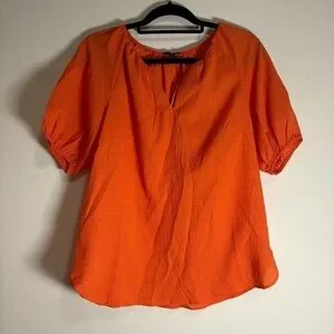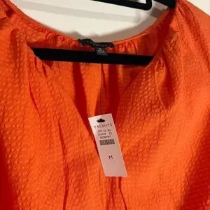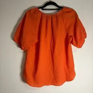 Talbots Seersucker Elbow Sleeve Top in Orange size Medium NWT