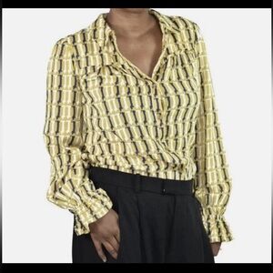 Maeve Anthropologie Fredericka Dog Blouse Top Size 2 Yellow Blue Dachshund