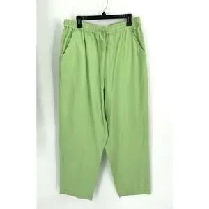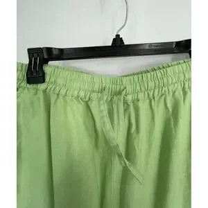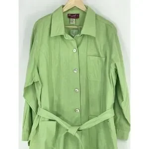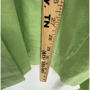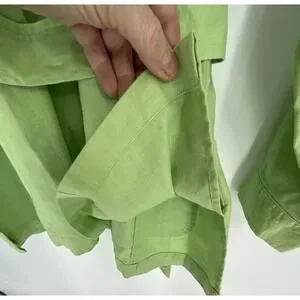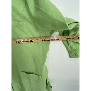 NWT Denim & Co Womens 1X Pants Suit Linen Blend Lime Green Safari Tunic Pockets