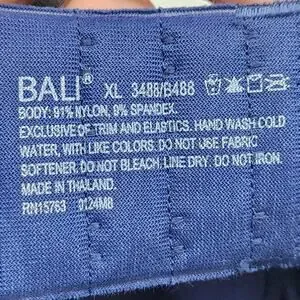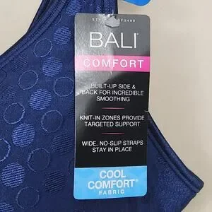 NWT new with tags women's Bali navy blue polka dot (official color: In The Navy Dot) Comfort Revolution ComfortFlex Fit Shaping Wireless Bra, size XL extra large. Garment is in new with tags condition. Material content is 91% nylon/9% spandex. Retails for $50.