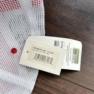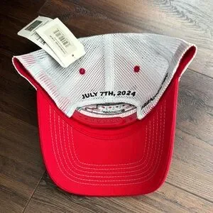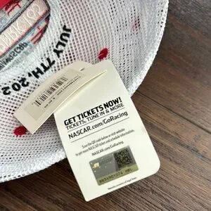 Bold red front with white mesh back. Embroidered Nascar Grant Park 165 logo. Perfect for racing fans.