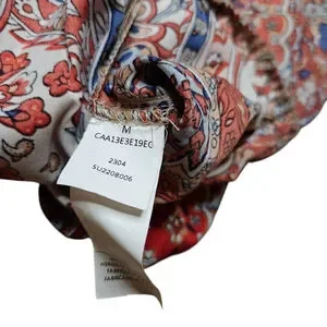 Get ready to turn heads in this colorful Women's Medium Red and Blue Paisley Off-Shoulder Shorts Romper with Tassels.