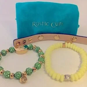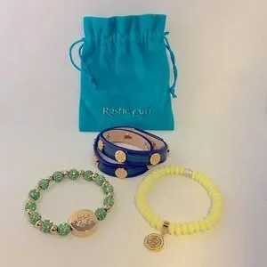 Rustic Cuff Bracelet Set – Green, Yellow, and Blue – Bundle