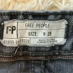Free People Denim Shorts mid rise washed black SZ 25 button fly raw hem