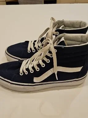 Vans SK8 High-Top Sneakers in Navy and White Men's Size 9 Women's Size 10.5