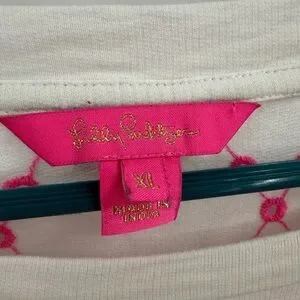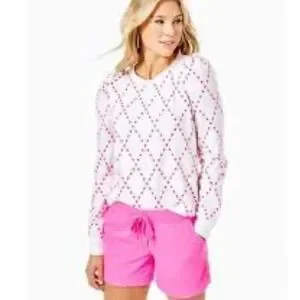 Lilly Pulitzer Jansen Eyelet Sweatshirt in the color "Prosecco Pink".