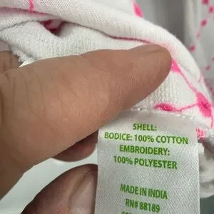 Signature Detailing: A bright pink interior neck tape featuring the brand name.