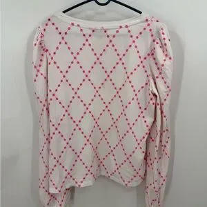 White Long Sleeve Top with Pink Diamond Dot Pattern