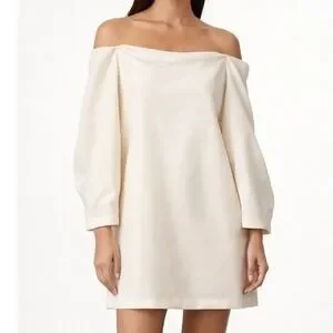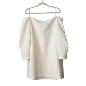 BCBGMAXAZRIA Off Shoulder Puff Sleeve Mini Dress Cream Ivory Size L