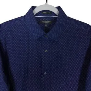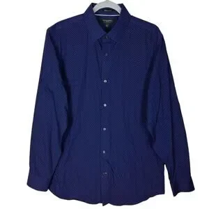 Banana Republic Shirt Men's Large Blue Cotton Polka Dot Grant Slim Fit Button-Up