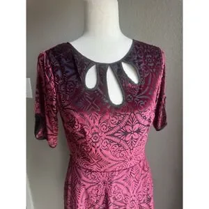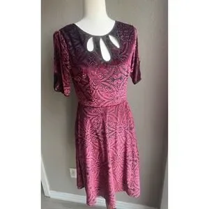 Modcloth Rockabilly Cherry Red Swing Dress Stretch Velvet 40s 50s Vibe Small