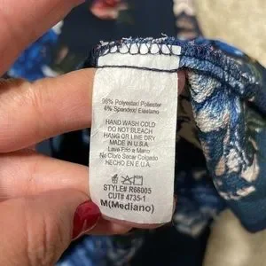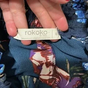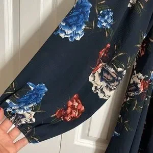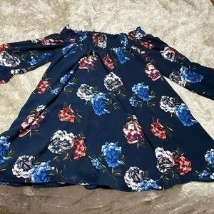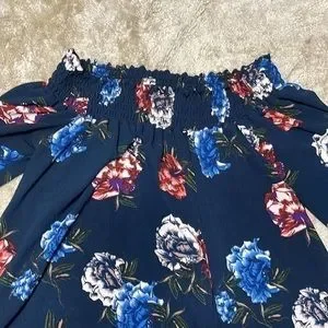 Rokoko by Dazz Navy Floral Smocked Off Shoulder Long Sleeve Mini Dress M