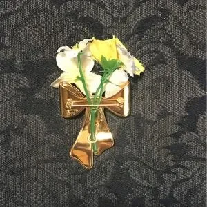 1980 AVON Gold Tone “Special Bouquet Corsage” Pin, Original Silk Flowers—Vintage