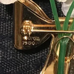 This 1980 beautiful, delicate pin is Avon in its heyday! Marketed for spring/Mother’s Day, but perfect all year round.
