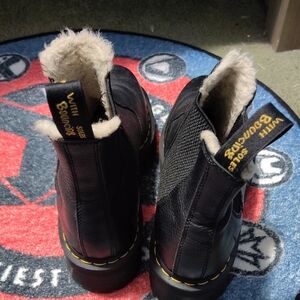 Dr. Martens Black Leather Platform Chelsea Boots with Shearling Trim