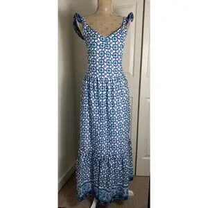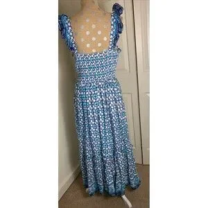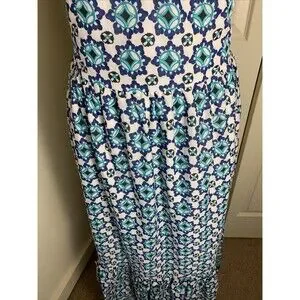 The Lucky Brand Maxi Dress in XL size is a vibrant and stylish option for the summer season. Made from 100% cotton, this sleeveless dress features a V-neckline and ruffle accents, perfect for a resort or beach look. The geometric floral pattern and bohemian theme make it versatile for various occasions, from casual outings to formal events. Easy to care for with its machine washable fabric, this multicolor dress also has a smocked back for added flair and a pullover closure for convenience. Perfect for women looking for a comfortable and fashionable summer wardrobe staple.